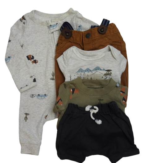 #8618 BUNDLE: Carter's Variety / Size: NB / $20 #8666 BUNDLE: Sacks (2) / Size: 0-6 Months / $17 #8591 BUNDLE: Sleepers (5) / Carter's and Simple Joy by Carter's / Size: NB / $27 #65 Variety Bundle 4 Bodysuits / Size: Newborn $27 #94 Wonder Nation / Carter's (2 piece) Sleep & Play / Newborn / $19 #84 Carter's Bodysuit and Pants / Size: Newborn / $19 #74 Carter's Bundle (6 pieces) / Size: Newborn / $33 #8688 BUNDLE: Sleepers (2) / Brands Below / Size: 0-3 Months / $21 #8738 Variety 3 Sleepers / Size: 0-3 Months / $24 #8688 BUNDLE: Sleepers (2) / Brands Below / Size: 0-3 Months / $21 #63 CARTER'S Bundle / Size: 0-3 months /$24 #4991 Carter's Plush Vest / Gymboree Pants / Size: NB/0-3 Months / $18 #8680 BUNDLE: Variety / Size: 0-3 Months / $16 #8514 BUNDLE: Sleepers (2) / Size: 0-3 Months / $17 #8676 BUNDLE: Brand Below /Sweatshirt (2) Top (1) Jeans (1) / Size: 3 Months / $25 #70 Variety Bundle (7 pieces) / Sizes From 0-3 Months / $36 #8608 BUNDLE: Sleepers (2) / Carter's & Just One You / Size: 3 Months / $17 #129 Variety Bundle (2) Sleep & Play / Sizes: Newborn, 3 months / $19 #8691 BUNDLE: Sleepers (2) / Size: Ranges from 3-6 Months (see below) / $21 #8625 BUNDLE: Sleepers (3) / Size: 3-6 Months / $24 #6427 LITTLE ME (2 pieces) Bodysuit and Sleep & Play / Size: Varies 3 M to 9 M / $19 #189 Variety Bundle (5 pieces) Sleep & Play / Sizes: From NB up to 6 months / $39 #8713 BUNDLE: Brands Below / Tops (2) Jeans (1) / Size: 24 Months and 2T / $21 #8635 BUNDLE: Sleepers and Sacks / Brand: See Below / Size: 0-9 Months / $21 #8718 BUNDLE: Brands Below / Tops (2) Sweatpants (1) / Size: 2T / $17 #137 Variety Bundle Bodysuits / Sizes: 6-12 months / $21 #125 Bundle / Sizes Varies from 6-12 Months / $25 # 197 VARIETY BUNDLE (2) Sleep & Play / Sizes: 12 & 18 months / $23 #8853 BUNDLE: Variety / Sizes: 18 Months / $24 #8789 BUNDLE: Variety / Size: 18 Months /$29 #8763 Variety of Brands: See Below / 3 Shirts and 1 Pair of Pants / Sizes: 24 Months - 2T / $22 #1848 BUNDLE: Carter's / Sleepers (2) / Size: 6 Months / $19 #8701 BUNDLE: Brands See Below / Tops (2) and Sweatpants (1) / Size: 2T / $19 #8366 BUNDLE: Carter's / Sleepers (3) / Size: 2T / $21 #8747 BUNDLE: Variety / Size: 2T / $24